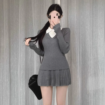 بلوفر حلو بأكمام طويلة وتنورة طقم من قطعتين سترة نسائية